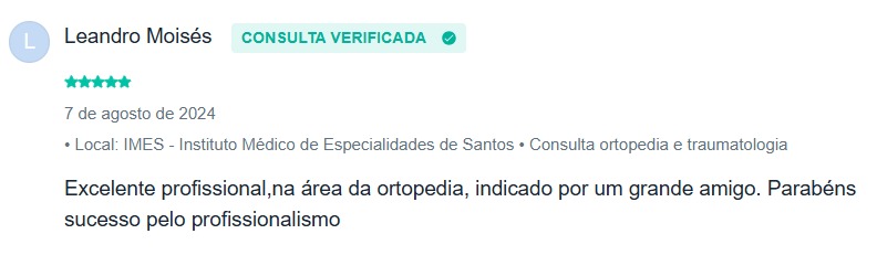 - Chefe coordenador do serviço de ortopedia e traumatologia da Prevent Senior Baixada Santista.